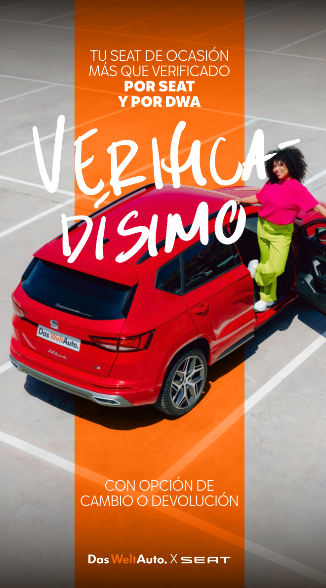 *Bonificación sobre PVP, IVA incluido, para clientes particulares y autónomos en Península y Baleares que financien a través de Volkswagen Bank GmbH S.E (según condiciones contractuales), aplicable a todos los vehículos Das WeltAuto de las marcas SEAT y Volkswagen, con hasta dos años de antigüedad disponibles en la Red Das WeltAuto sujeta a un capital mínimo de 16.000 € y una duración y permanencia mínima de la financiación de 60 meses. Ejemplo de cuota: importe a financiar de 16.000,00€. Sin entrada. 60 cuotas de 347,32€/mes. Comisión de apertura al contado: 480,00€ (3,00%). Importe de los intereses 4.103,65€. Coste total del crédito 4.583,65€. Importe total adeudado: 21.319,20€. Precio total a plazos: 21.319,20€. TIN: 8,99%. TAE: 10,74%. Sistema de amortización francés. La oferta incluye Seguro de Protección de Pago Básico opcional y financiado por 735,55€ que no está incluido como gasto en el cálculo de la TAE. La oferta incluye gratis 2 años de Mantenimiento o 40.000km (lo que suceda antes) y Extensión de Garantía de un año sin coste adicional para vehículos financiados con Volkswagen Bank GmbH S.E Incompatible con otras ofertas financieras. Oferta válida para unidades comercializadas hasta fin de Salón VO. Incompatible con otras ofertas financieras.
